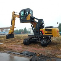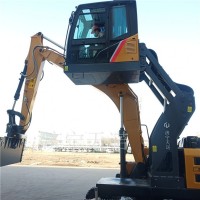 此款产品是一种驾驶室可升降的系统,驾驶员在作业过程中降低操作难度,保障施工作业安全。可升降驾驶室挖掘机结构如下:该挖掘机的驾驶室的底部通过液压油缸与一个辅助底盘连接,所述辅助底盘通过转动机构与挖掘机的底盘连接。在施工过程中,当因为驾驶室的高度不够而导致驾驶员视线被阻时,驾驶员可以控制液压油缸伸出,使驾驶室的高度提升,从而扩宽驾驶员的视野;当驾驶员视线被阻的条件消除后,驾驶员可以控制液压油缸缩回,使驾驶室的高度降低,以降低整体重心,保障挖掘机行驶安全。
