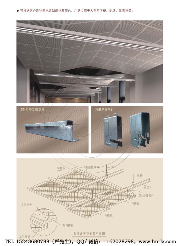 铝单板、铝天花、铝板幕墙、铝扣板、挂片天花、铝方通、条扣天花、格栅天花、方板天花、Z型勾搭龙骨、A字龙骨、型材方通龙骨、轻钢龙骨、烤漆龙骨、圆管天花