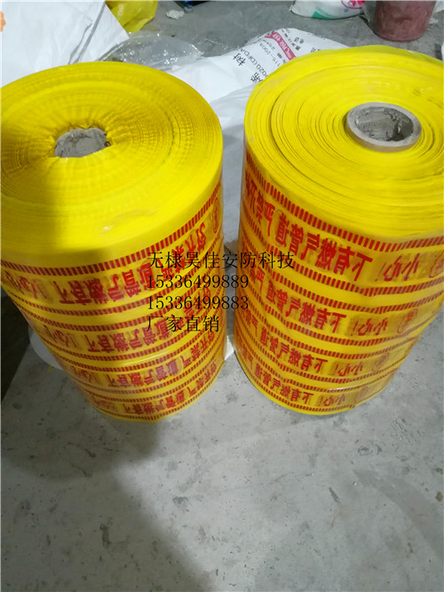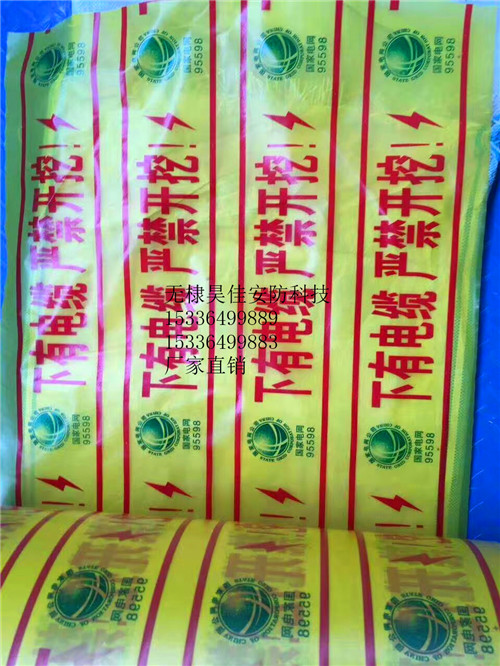 我公司专业生产各用户所需的多种规格电力地埋式警示带、燃管道地埋式警示带、编织布地埋警示带,并具有使用方便、粘性强、耐候性好,等特点,深受广大用户欢迎,各项性能指标均达到或超过产品行业标准。