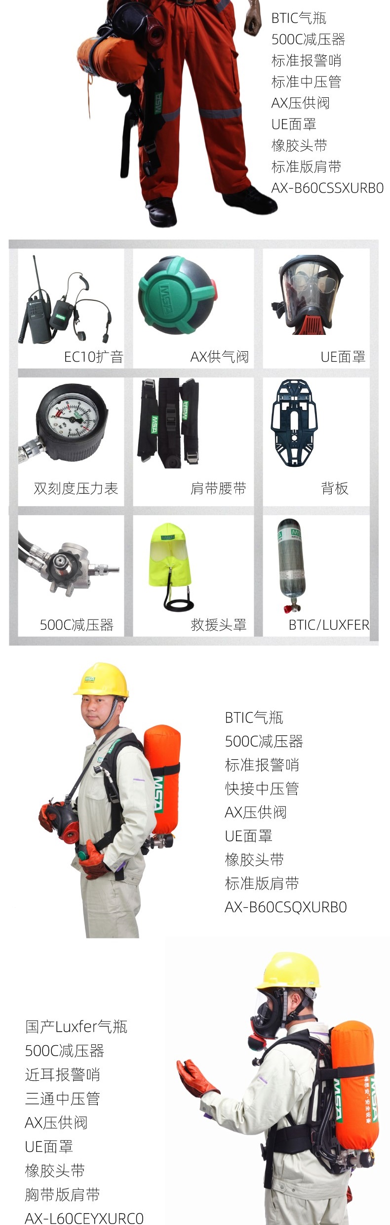 10167770 国产Luxfer气瓶,6.8L, 带瓶表,500C减压器,胸前报警哨,三通中压管,AX压供阀,UE面罩,橡胶头带,AX-L61CCYXUR0