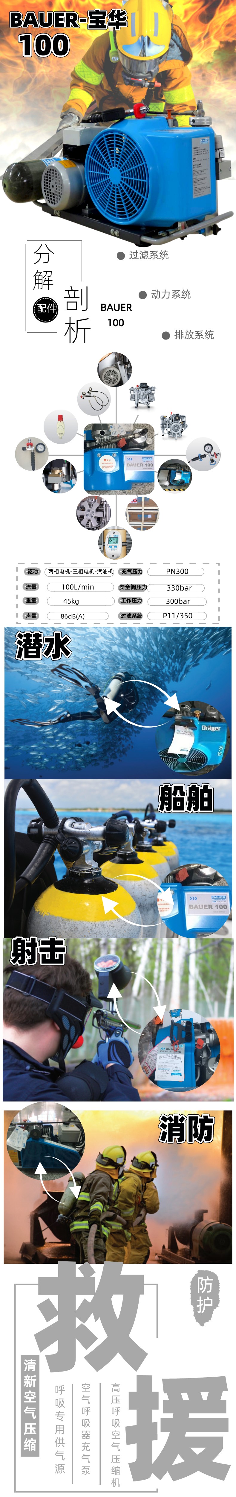 宝华BAUER100电动充气泵通用便携式高压呼吸空气压缩机技术参数: