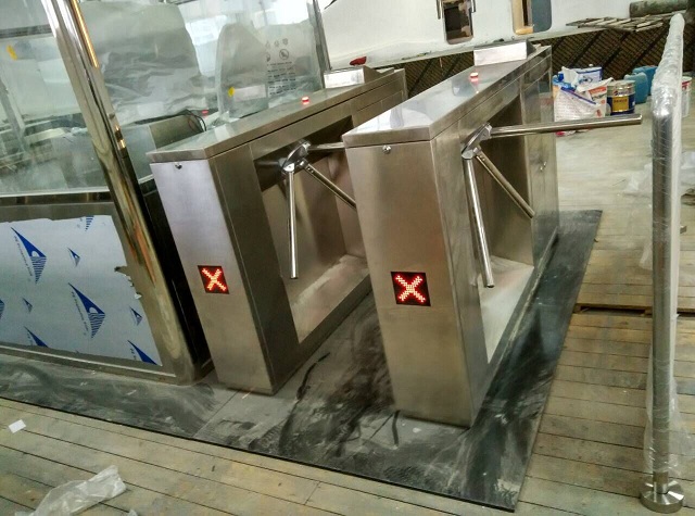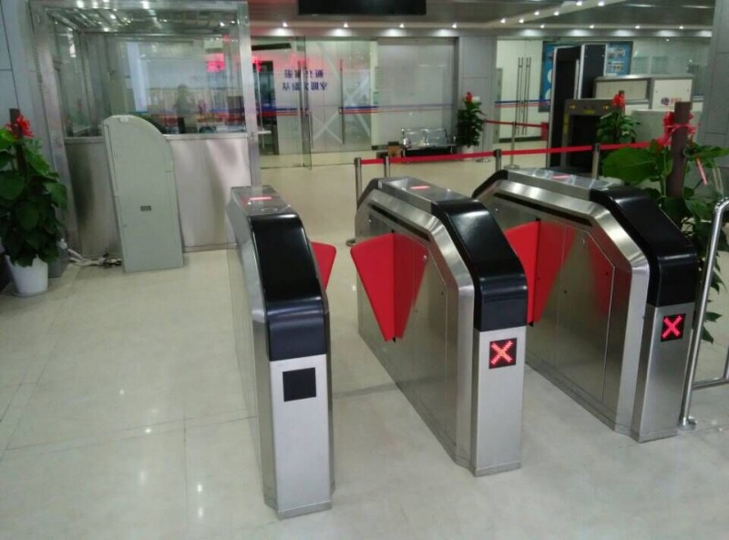 在车站非付费区与付费区之间安装三通道检票翼闸,其中一通道为双向,其余一通道进站、一通道出站;