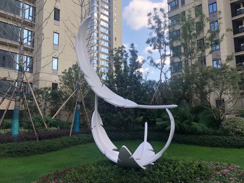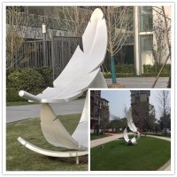 不锈钢羽毛雕塑将羽毛的轻通过不锈钢这种坚硬的材质固化,把羽毛一瞬间的漂浮状态定格,将之安装在地面上,使得宁静的场地注入了艺术息与活力。