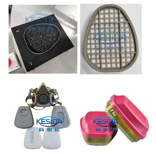 本机用于防毒口罩碳盒的碳粉定量装碳及上盖的组装超声波焊接.采用3转盘多工位一出一设计; 底盒与压缩棉的组装超声波焊接,上盖与压缩棉的组装超声波焊接,上盖与底盒的组装,装碳及超声波焊接.工艺流程为:人工上料底盒到进料带,自动机械手夹取上料到转盘夹具,底盒压缩棉自动上料组装.,超声波焊接,机械手转移底盒到另一转盘夹具,自动装碳,自动压力振平,自动装上盖,上盖通过自动上料,底盒压缩棉自动上料组装,超声波焊接,机械手转移上盖到另一转盘夹具与底盒组装.超声波焊接,自动下料收集,人工将碳粉导入大容量不锈钢料斗盒,定量杯自动直线推出装碳.,采用气动振动器确保装碳粉的稳定性及.一致性.操作简单方便,自动吸尘环保功能,使用安全,PLC控制,触摸屏显示操作.无底盒自动识别不装粉保护。