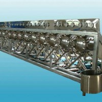 旋流器是由多只小直径的液体旋流管组合而成,在淀粉工业和相近行业应用较广泛,一般采用7-23级,淀粉乳从某级进入,顺次通过各级。从z后一级底流出料,洗水从z后一级进料泵进入、依次逆流通过直至z前一级,由dy级溢流排出。这一装置的目的是进一步除去分离夫质后淀粉乳中可溶和不可溶的杂质,这些杂质主要是蛋白质。不溶性蛋白质是夫质的一部分,可溶性杂质包括可溶性蛋白质和无机盐一类杂质。