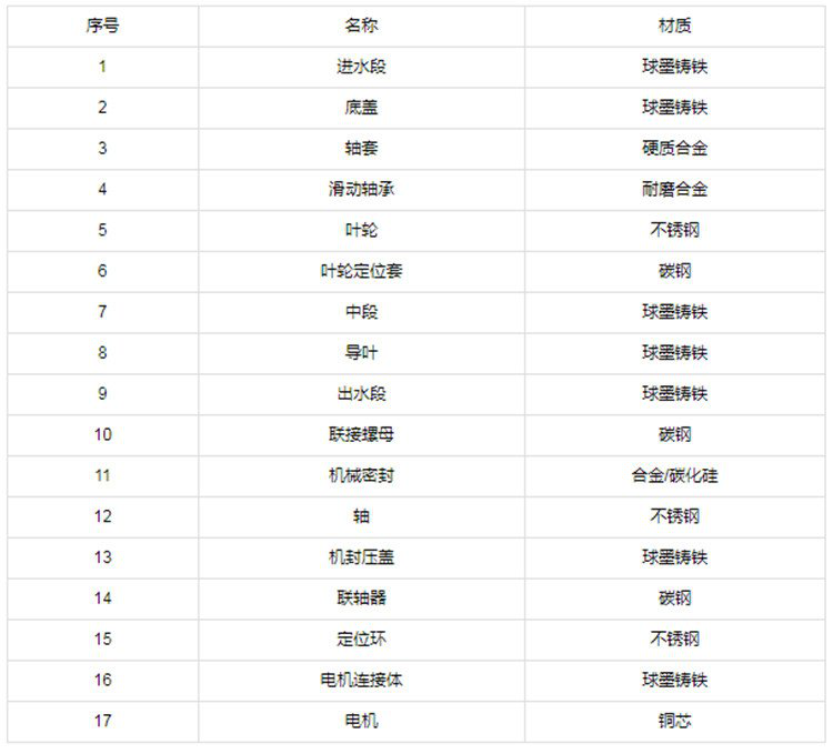 五、XBD-GDL型立式多级管道消防泵结构简图及零部件材质表:上海三利泵业(集团)有限公司