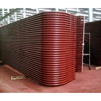 1、当分段的管排吊放到组合架上之后,要对管排的宽度、长度、平整度及对角线进行检查和调整。如管排宽度大于或小于规定尺寸时,可将鳍片割开适当的长度,调整到规定尺寸后再重新焊好。管排对角线差值超过lOmm时,可割开尺寸偏大一端部分管子间的鳍片,使管距缩小至能消除对角线差值后,再将鳍片焊好。管排不平整度超过允许范围时,可采用龙门架利用千斤顶顶压校正。