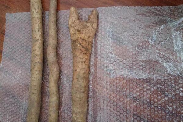 宫家细毛山药的主要特点是:茎蔓生,叶绿色、卵圆形,尖端三角锐尖。叶腋间着生气生块茎,俗称“零余子”,深褐色,椭圆形。花淡黄色,雌雄异株。地下块茎棍棒状,长80-100厘米,横径3-5厘米,重400-600克,外皮薄,黄褐色,有红褐色班痣,毛根细,块茎肉质细、面,味香甜,适口性好。经化验,块茎含粗蛋白14.48%,粗脂肪3.78%、淀粉43.7%、全糖1.14%。亩产块茎1500-2000公斤,高产地块可达2500公斤。