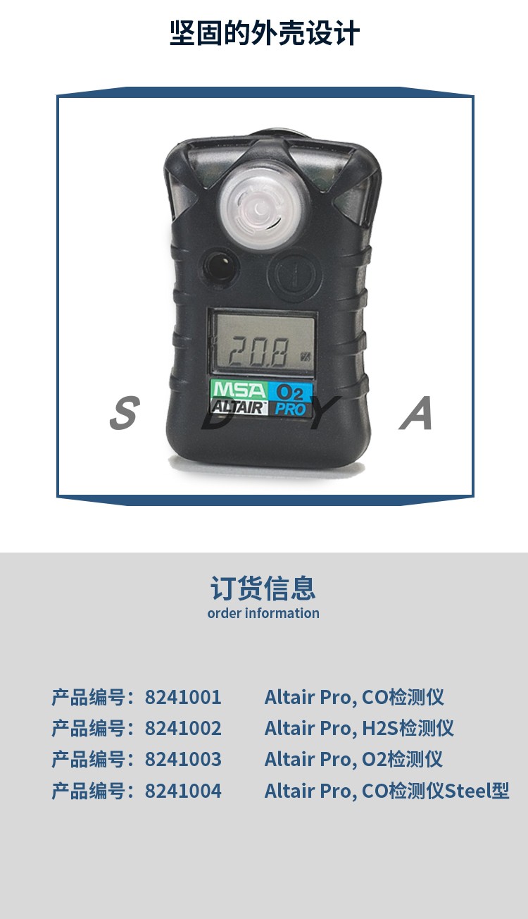 除现行可供选择的多种气体,Altair Pro天鹰单一气体检测仪具有令操作者放心无忧的性能,能承受苛刻的使用环境。传感器及电池易于更换,使整机持久耐用。Altair pro天鹰单一气体检测仪是MSA 天鹰系列旗下的产品,该系列仪表为客户提供了多种气体检测的解决方案。主要性能特点: