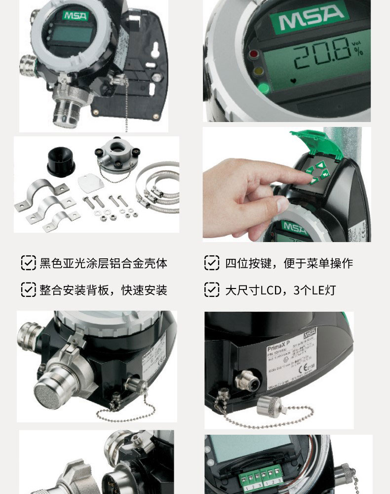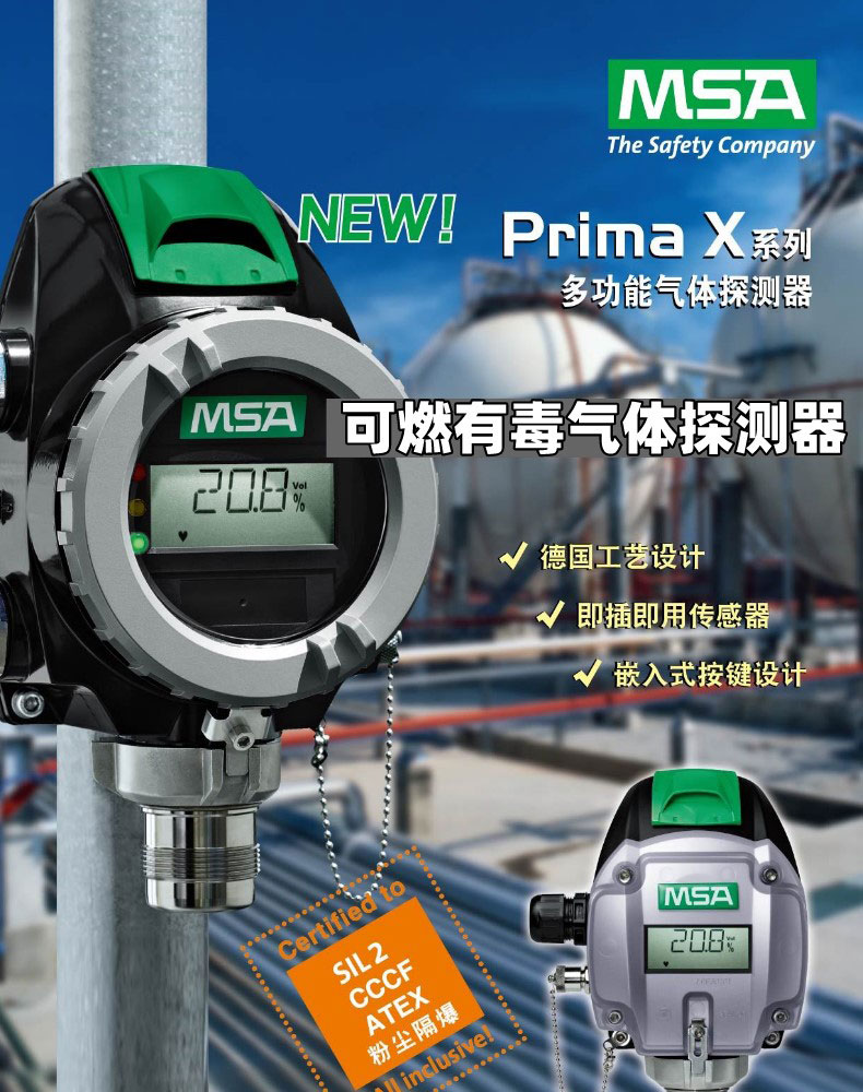 梅思安PrimaX P在线式可燃氧气氨气氢气硫化氢气体报警探测器环境特性: