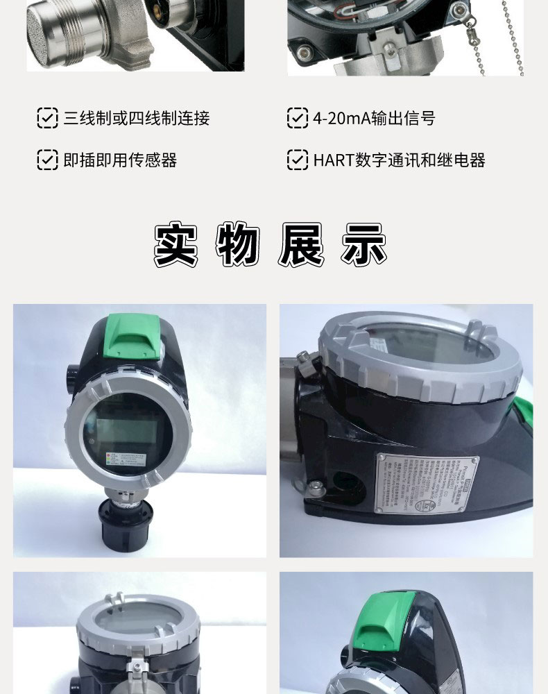 4、输出信号: 输出4-20mA并可选HART,可负载 300 欧姆