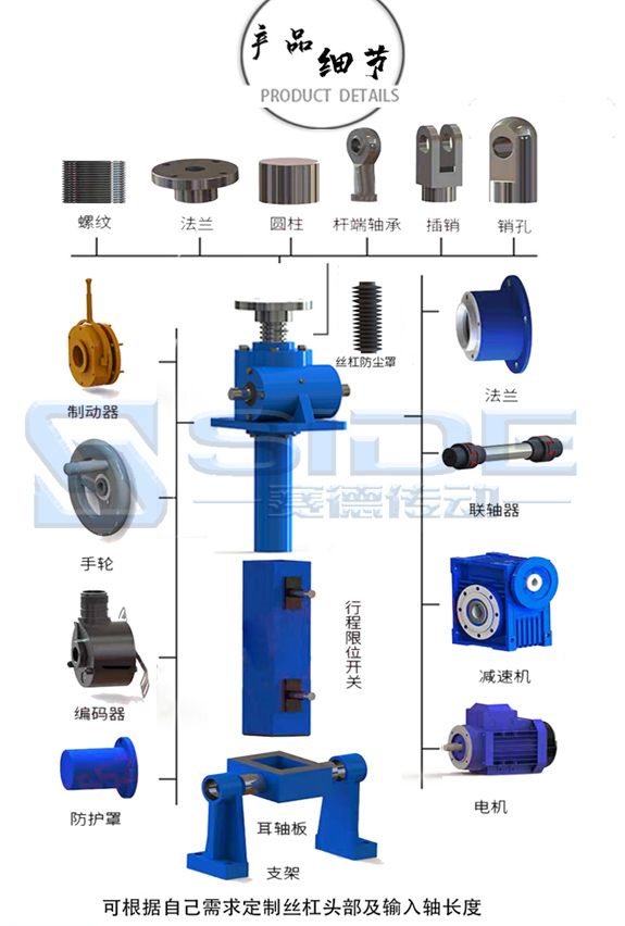 SWL系列蜗轮丝杆升降机 是一种基础起重部件,符合JB/T8809—1998(原JB/ZQ4391—86)标准。承载能力2.5—120T。具有结构紧凑、体积小、重量轻、动力源广泛、噪音小、安装方便、使用灵活、功能多、配套形式多、可靠性高、使用寿命长等优点。能按一定程序准确地控制调整提升或推进的高度,可以用电动机或其它动力直接带动,也可以手动。输入转速1500r/min,提升速度2.7m/min。有不同的结构型式和装配方式,提升高度按用户的要求制造。该装置可以自锁。