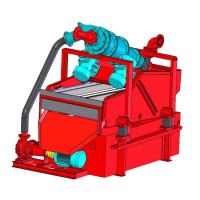 从物料输送泵来的含泥浆料,进入固液分离机的筛中进行粗/细煤泥分离和脱水。它是整个设备的核心部分,其工作过程是利用振动电机作为振动源,使物料在筛网上被抛起,同时向前作直线运动,物料从给料泵(煤泥输送泵)均匀地进入固液分离机的进料口,通过筛网产生筛上物、筛下物、分别从各自的出口排出。其中筛下物通过安装在振动筛下的水槽临时储存并由次级泵输送到旋流器中进行浓缩和分级处理。浓缩后次级颗粒进入固液分离机上层次级细筛中脱水,溢流出的微颗粒浆从溢流管流回水沟中。筛上物(煤或者岩石颗粒,筛上物颗粒大小由筛网调节)经出料口落入矿车或后续设备中被告转运到时地点。
