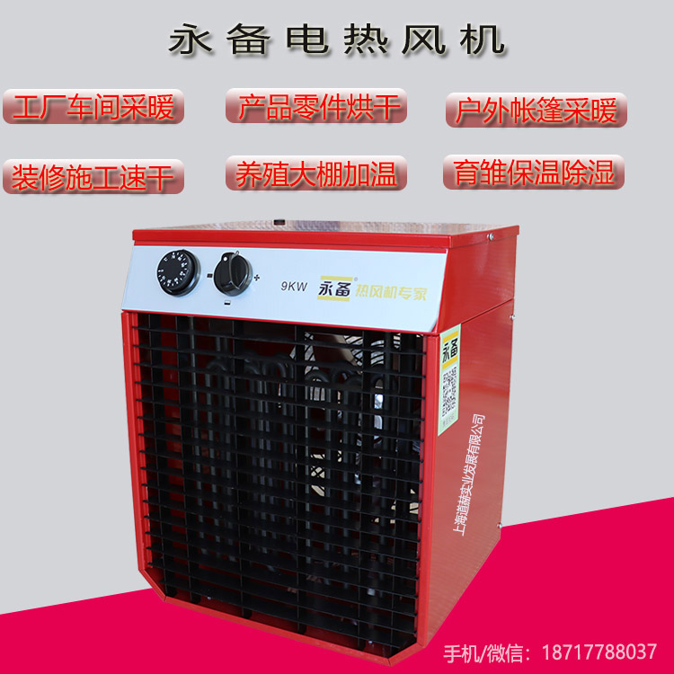 永备电热风机9kw厂房养殖育苗烘干加温暖风机