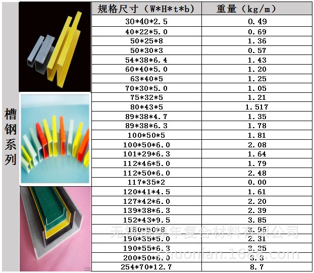 玻璃钢槽钢是由无碱无捻玻璃纤维合股粗纱,经整经并浸以聚酯树脂或环氧树脂连续引拔成型、加热固化而成,具有较高的机械性能和介点性能,并且按照不同模具可以制成各种形状截面的棒材满足用户不同需要。