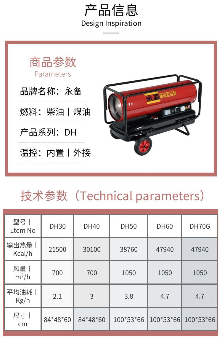 机型应用:适用于建筑工地或小型工业厂房的临时采暖或干燥;厂房的加温供暖;