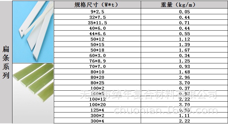 玻璃钢扁条是由无碱无捻玻璃纤维合股粗纱,并浸以聚酯树脂或环氧树脂连续引拔成型、加热固化而成,具有较高的机械性能和介点性能,并且按照不同模具可以制成各种尺寸的扁条来满足用户不同需要。
