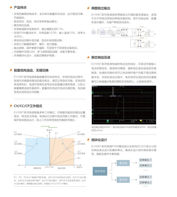 1. EVWBT-050-800型采用四象限控制技术,全功率内能量双向流动,运行稳定可靠,节能高效。