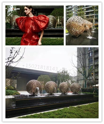 楼盘内水景 不锈钢镂空球雕塑 流水球雕塑工厂