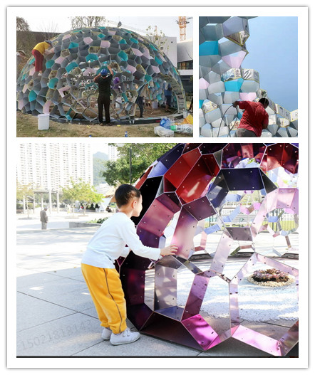 不锈钢镂空球雕塑表面,具体的图案造型可以定做,我们可以根据不同的规格、花纹、形状等,来图来样定做。不锈钢镂空球的制作和XXX不锈钢雕塑的制作流程基本一致,首先要将不锈钢版按照电脑上设计好的图案进行切割,然后管折弯成同等弧度,用以组合镂空球外观,同时我们需要在花纹造型上编号,工人方便记录镂空球雕塑的安装位置。
