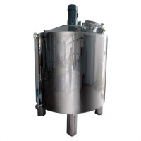 不秀钢搅拌罐又名配料罐、配料桶,为上开启式,下斜底三层结构,具有可加热自动控温、保温、搅拌功能;传热快、适应温差大、清洗方便等优点。广泛应用于食(乳)品、制药、日化、饮料、油脂、化工、颜料等行业做为中间缓冲、储液、搅拌、调配设备(在物料无须加热可调配均匀的的状态下,该设备为经济实用)、加热、混合调配。特别适合于无蒸汽热源的单位与科研机构的小、中试使用。并可按工艺需要采用全封闭式结构、保温结构。