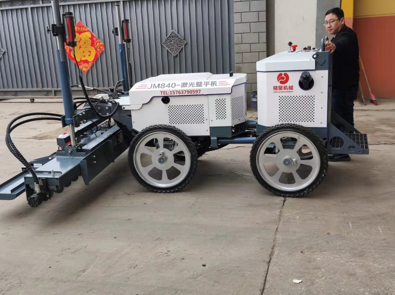 座驾式激光整平机通过激光系统和电脑控制系统在自动找平的同时完成整平工作,激光整平机整平头上配备有一体化设计的刮板、振动器和整平板,一次性完成所有找平、整平、振捣压实的工作。