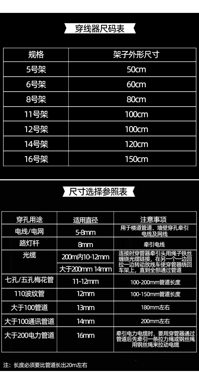 引线拉线通管穿缆穿线器12mm 14 16 150m200米