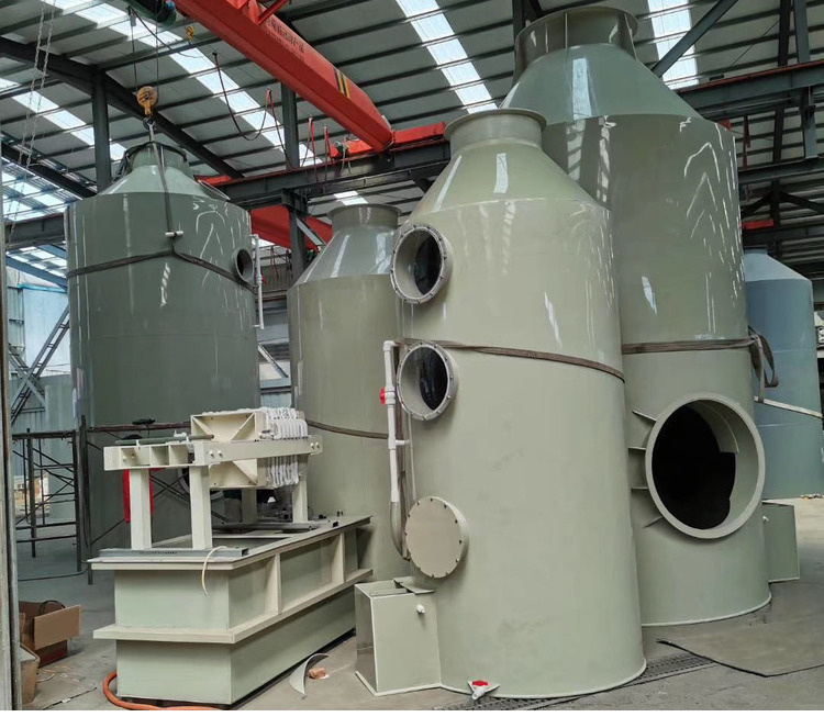 除雾旋流机械喷淋塔又名洗涤塔,水洗塔,是气液发生装置。废气与液体充分接触,利用其在水中的溶解度或者利用化学反应,加药来降低其浓度,从而成为符合国家排放标准的洁净气体。主要用来处理无机废气,如硫酸酸雾,氯化氢气体,氮的不同价态氧化物气体,即NOx,粉尘废气等。