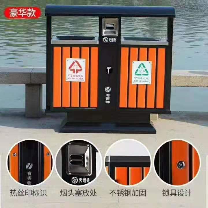 12、标识:采用抗紫外线、耐磨印刷‘可回收物”、“其它垃圾”标志,符合GB/T19095-2003标准,色彩鲜艳度能保持5年以上。