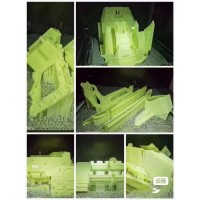而没有胶水的区域仍保持松散状态。这样在一层胶水一层粉末的交替下,实体模型将会被“打印”成型,打印完毕后只要扫除松散的粉末即可刨出模型,而剩余粉末还可循环利用。