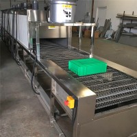 1、控制部分:采用电脑控制变频调速电机,满足不同生产量不同规格的周转箱清洗要求