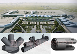 目前,大跨度空间桁架钢结构因其含钢量低、造型特优美、施工周期短等优点已广泛应用于会展中心、体育场、飞机场等大型民用标志性建筑。铸钢节点则因其特有的性能,在国外已广泛应用于大跨度空间观桁架钢结构中的重要节点,国内正在大力推广应用。我公司承接的北京新机场工程、上海虹桥机场、上海浦东机场、武汉天河机场、济南东站、石家庄会展中心、深圳会展中心、国家城市的大部分体育场馆工程等大型民用标志性建筑中均应用了的、高难度的大型铸钢节点。铸钢节点一般应用于荷载较大、受力复杂的关键部位,其可靠性直接关系到整个工程结构的安 全,十分重要。铸钢节点因其良好的加工、复杂多样的建筑造型等性能,目前在一些大跨度空间管桁架钢结构中开始被推广使用,特别是在处理复杂的交汇节点上,铸钢节点有着得天厚的优势。如今,在火车站、高铁站、飞机场、体育场、大型建筑的建设中都离不开铸钢节点。