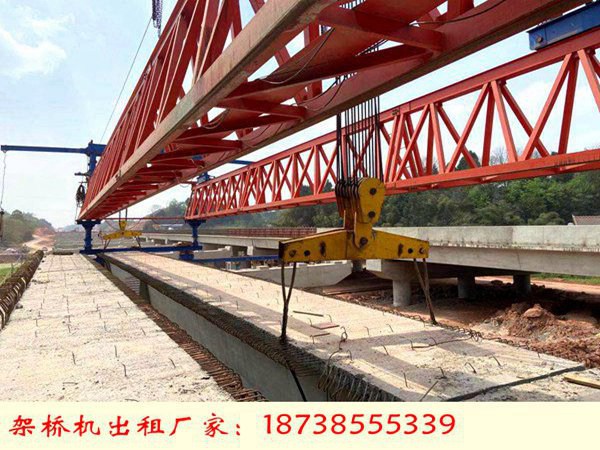 山西晋中架桥机出租厂家总结出架桥机按照应用不同有好几种,常见的是高速公路架桥机和铁路隧道架桥机,架桥的的使用加快了我国交通建设的进程。架桥机在使用时有过孔架梁这一步,这需要架桥机根据斜交角度调节可移动支承梁及两后转向车的位置,单独调节前后两个升降支腿的伸缩幅度,检测无误后才能进行过孔