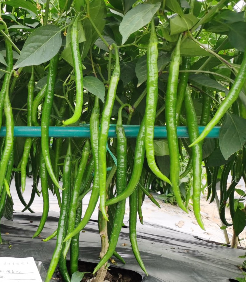 顺直62,早中熟线椒品种。株形较开张,株高60cm,株幅60cm。果实小羊角形,果长25-32cm,横径1.8-2cm。椒条顺直光亮,嫩果绿色微皱,味微辣青脆。连续座果能力强,抗病能力强,丰产性好。