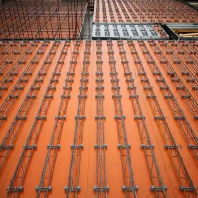 在施工现场,可以将可拆卸钢筋桁架楼承板直接铺设在钢梁上或者铝模及木模上,然后进行简单的钢筋工程,便可浇筑混凝土。使用该木板在自乘荷载范围内不需要架设木模及手脚架,底部竹胶架,建筑木模板及镀锌钢板仅做模板用,不替代受力钢筋,故不需要考虑防火喷及防腐维护的问题,混凝土硬化后底部拆下重复使用。并且,钢筋排列均匀,上下两层钢筋间距及混凝土保护层厚度能充分得到保证,为提高楼板施工质量创造了有利条件。当教主混凝土形成楼板后,具有现浇板整体刚度大、抗震性能好、抗冲击性能好、防水性能好等众多有点。