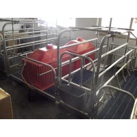 母猪产床,主体采用热浸锌管或喷漆管焊接,使其结构 合理,经济实惠,质量和寿命大幅提高,成为各大规模化养猪厂的 ,仔猪塑料地板,母猪球墨铸铁地板,扁钢大梁支撑。含母猪食槽,仔猪圆形补料槽,保温箱,电热板。