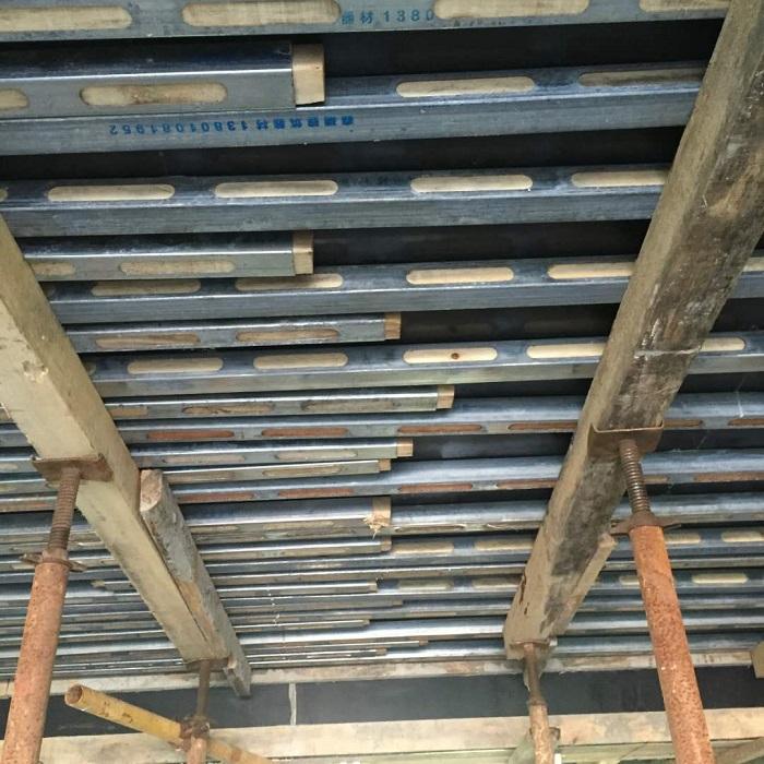 钢木龙骨应该算新产品,主用途是在建筑施工,对墙板和顶板的支撑,而且我认为很快钢木龙骨将会取代传统木方。木方与钢木龙骨对比:木方用量多、消耗高、平整度差、周转率低、破坏森林、污染环境。刚木龙骨与木方对比:平整度高、平稳度好、抗扭曲、荷载大、通用性强、寿命长、保值率好、性价比高、节能环保。发展过程中还有一种已经被淘汰的是C形钢木龙骨。由于很对问题已被淘汰比如:易扭曲变形、易开裂、不平稳、断面尺寸误差大、 寿命短、不保值、维修率高、墙顶板不能通用。 由于木龙骨原材料就是木材。所以在防火性能方面是非常的差。另外大家还知道木材的一些特性,就是在潮湿的环境下,木材很容易腐烂,发霉。所以木龙骨使用的年限很低。接下来就为我们介绍一下钢木龙骨的运用办法以及一些相关信息。成了框架形式的龙骨,就可以选择钢木龙骨,这样的安装会比较统一,而且还能协调一下场地的外观效果