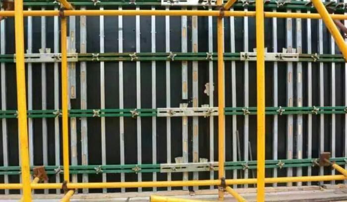 在建筑施工中,墙体模板加固传统施工是竖向龙骨,采用40*80mm木方,横向主 ,横向主龙骨间距450mm。使用模板新型加固体系钢包木,减少了周转材料的投入,降低了劳动力,也减少了搬运及吊装次数,提高了施工效率,保障了施工进度。