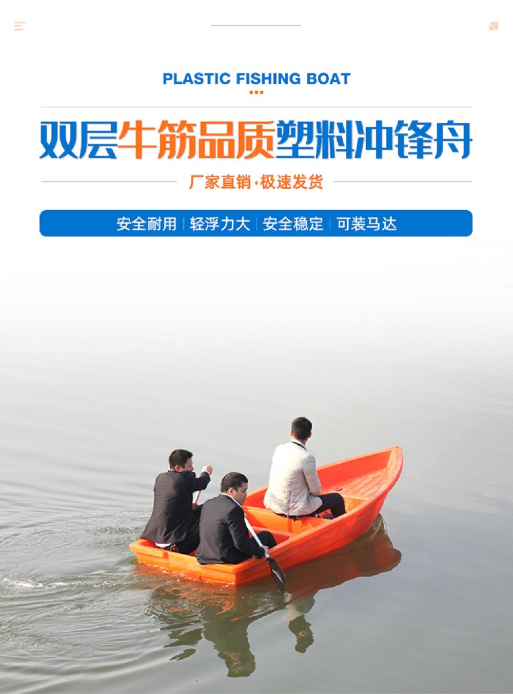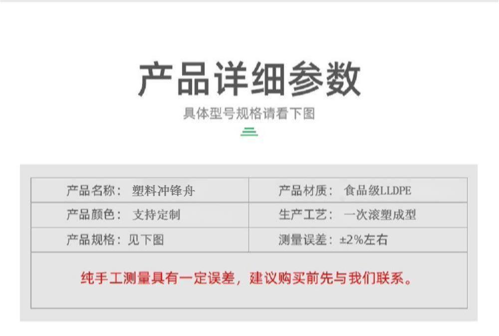 重庆綦江4米冲锋舟 双层加厚塑料渔船 河道清理打捞船——随着当今XXX对保护生态环境越来越重视,为了降低对森林的砍伐,塑料渔船已逐渐取代木质渔船。如果您正好在寻找一款轻巧、浮力大、稳定耐用的渔船,不妨来看看托力卡这款塑料冲锋舟。