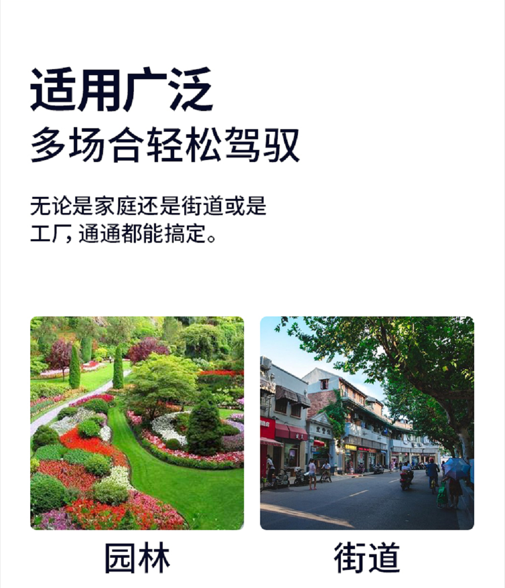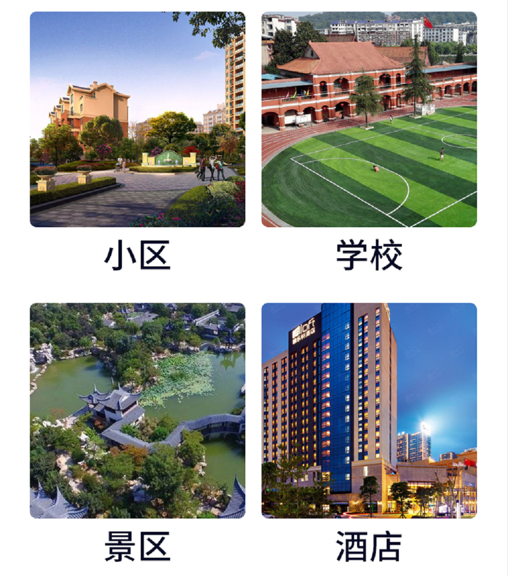 本产品广泛适用于生活小区、休闲广场、城市街道、园林绿化、学校、工厂、医院、市政环卫、公园、商业街、工业园区、车站周边、乡村建设、企业单位、机场、旅游景点、商场等各类公共场所。