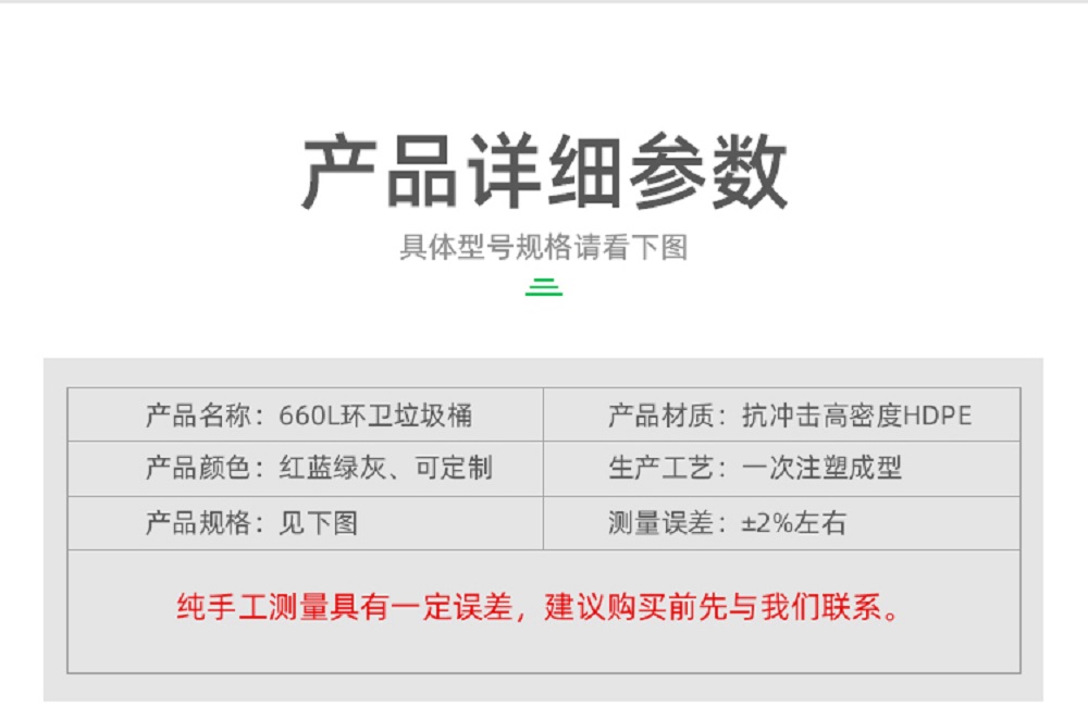 5、沿口加厚加固,可配合机械提升装置或环卫车辆使用;