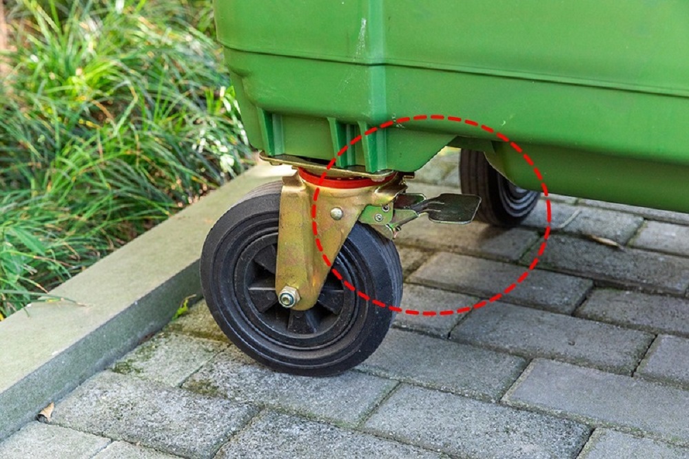 10、塑料垃圾桶前两只轮子装有刹车功能,后两只是万向转动轮,可以方便移动;设计符合人体工程学,轻便耐用,移动灵活;