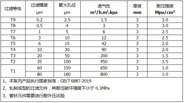 钛粉末烧结过滤元件技术参数