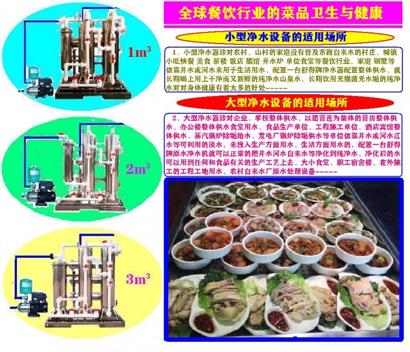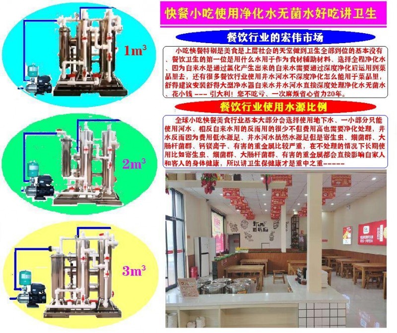 餐饮行业什么也离不开水、可想而知水质量的重要性、哪怕是洗个菜、泡个肉使用的水应该使用无菌水来完成、讲究卫生对大家都好、对得起自己对得起选择你的贵客--------