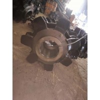 传动链轮由链轮、半滚筒组成。采用6条M20螺栓组成一整体。链轮采用优质合金钢模锻或铸造,啮合齿面经淬火理。锻造链轮的使用寿命为铸钢链轮的2倍以上,传动链轮与减速器第四轴以花键相连接,第四轴花键前端的平键和滚筒连接。