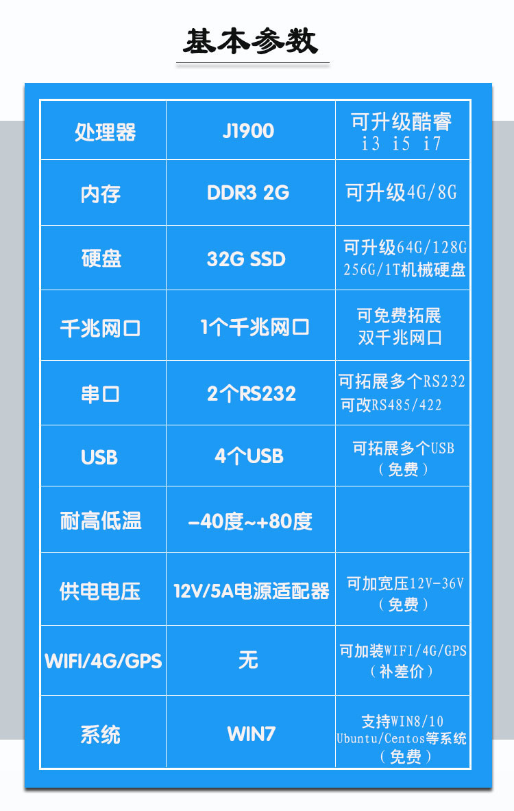 3.电脑供电:12V,出厂配有12V/5A 电源适配器 (可免费加宽压模块,支持9-36V供电)。