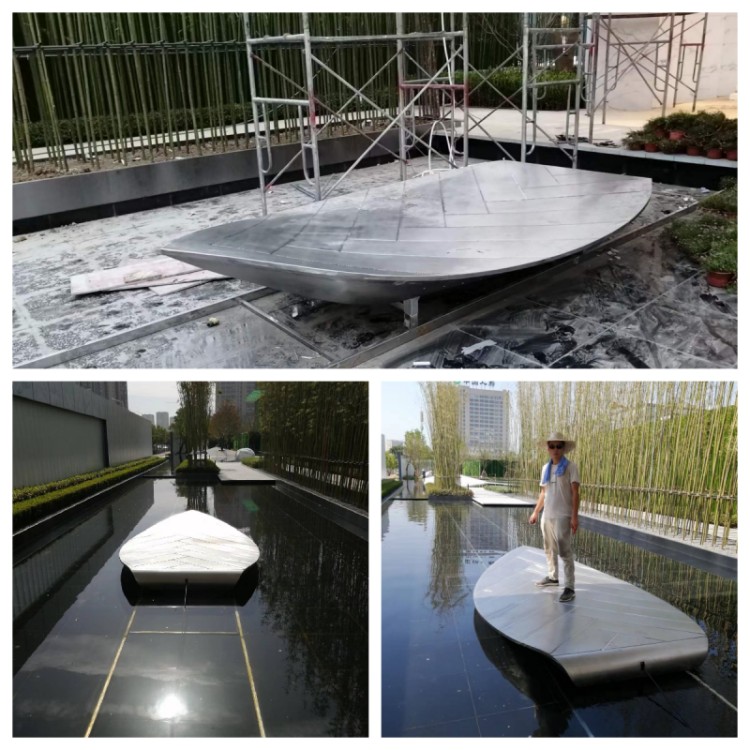 售楼部水景雕塑 手工锻造不锈钢一叶舟雕塑 抽象船