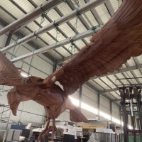 机械式桐木雕刻 大雕鹰雕塑 悬挂动雕