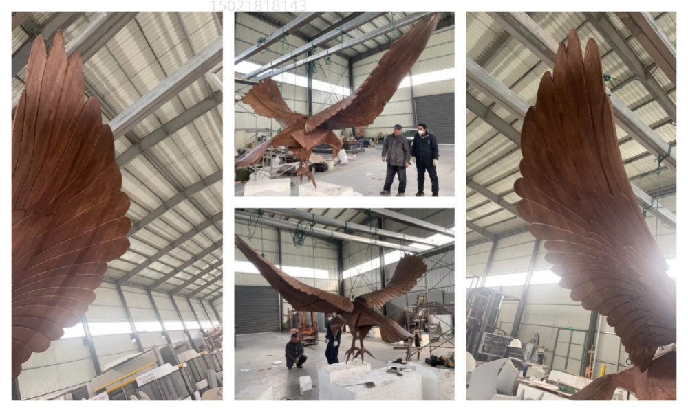 随着雕塑行业的不断发展,各种创新也出现了,除了材质的创新、造型的创新、雕塑也和光电结合了,会动对发光的动物雕塑是一种创新,我厂塑景雕塑制作的大雕雕塑头和翅膀是可以动的、而且也可发声。