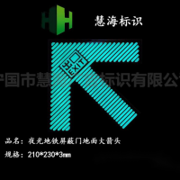 210*230*3mm,采用不锈钢基材,夜光部分采用我司高亮优质夜光粉,发光效果明亮且无半衰期,现用于徐州地铁屏蔽门前上下车